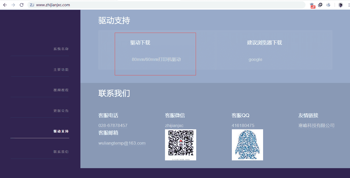 登陆指尖进销存官网 www.zhijianjxc.com ,进入驱动支持——驱动下载,选择“ZJ-6801打印驱动”点击下载。