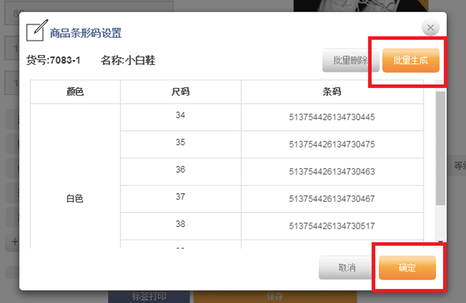 点击“条码设置”——点击“批量生成”